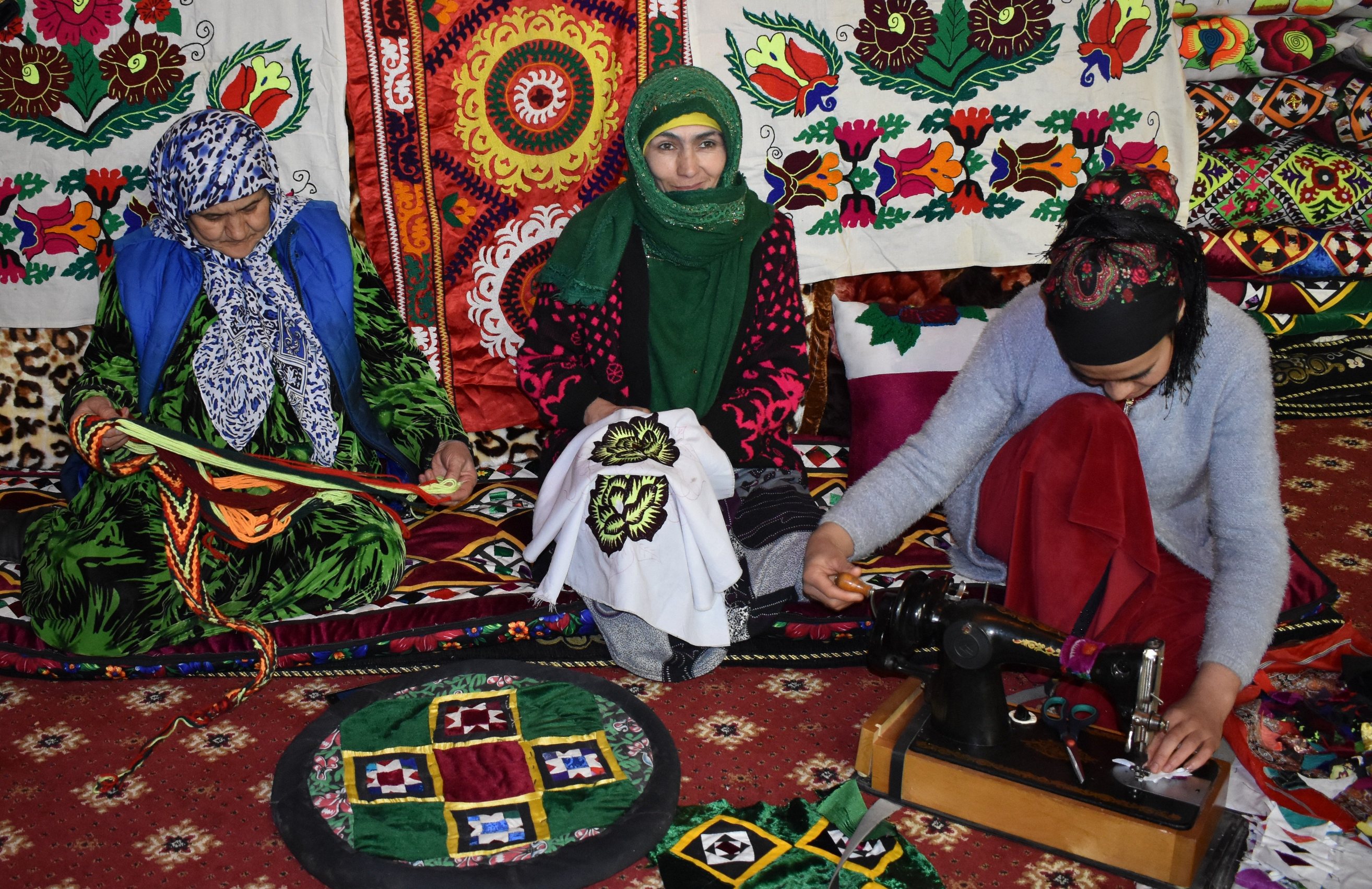 Раньше, по их словам, сельские женщины дома разводили шелкопряд. Сейчас нет такой возможности, нет тутовых плантаций. Выросло целое поколение женщин, которым уже под 40 и они в глаза не видели ручных прядилен, не знают, как выглядит «дукон» (станок), с помощью которого пряли шелковые нитки, чтобы их затем использовать для вышивания.