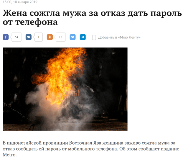 Основываясь на всех этих доводах, можно прийти к выводу, что новость о том, что якобы в Таджикистане женщина сожгла мужа из-за того, что он отказался выдать ей пароль от своего телефона, является ложью, то есть очередным фейком.