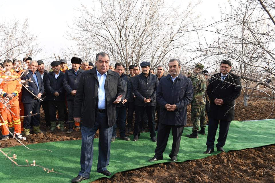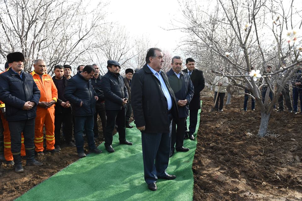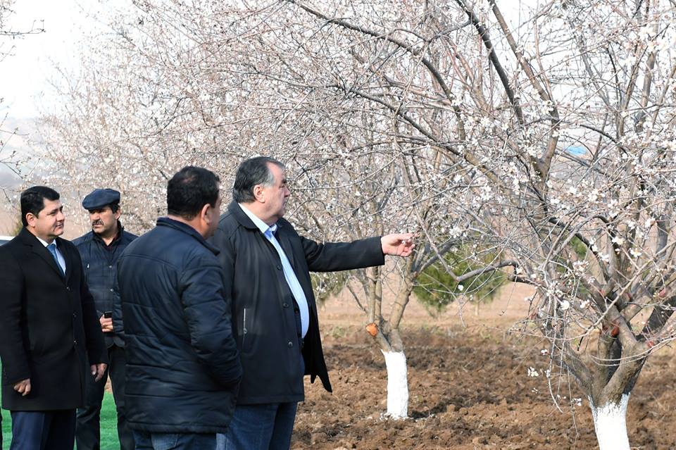 Президент Таджикистана в воскресенье, 24 февраля, поучаствовал в кампании по озеленению Дангаринского района Хатлонской области. В преддверии весны глава государства посадил несколько яблонь в новом саду, об этом сообщает пресс-служба президента.