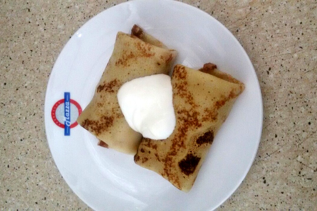 Если вы еще здесь не были, то точно проходили мимо. А если любите блины, то теперь есть повод заглянуть на огонек. В кафе предлагают три вида блинов – со сметаной и творогом, ягодным вареньем и с шоколадом, а еще с бананом. В порцию входит два блина, стоимость 8 сомони.