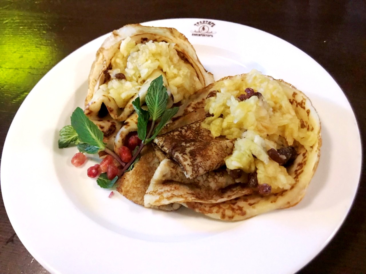 Это место пришло одним из первых на ум, когда мы думали о том, где можно поесть блинов, потому что именно здесь, наверное, можно найти самый большой их выбор. Блины с яблоками, мандариновым соусом, жареными бананами и карамелью, малиной и абрикосовым джемом, заварным кремом, медом, кремом «маскарпоне» и персиками, творогом, шоколадной пастой, персиками и апельсинами. И это только сладкие блины. Еще есть блины с жареной бараниной и овощами, грибами и сыром моцарелла, шпинатом и сыром «фета», курицей и грибами, семгой и плавленым сыром, уткой и овощами, с мясом и икрой лосося.