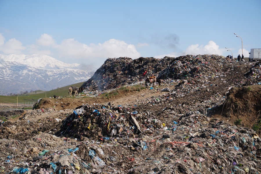 Самый крупный мусорный полигон находится на восточной окраине Душанбе, в 11 километрах от столицы. Сюда ежедневно приезжают десятки машин жилищно-коммунального предприятия города, доставляя на полигон тысячи тонн отходов.