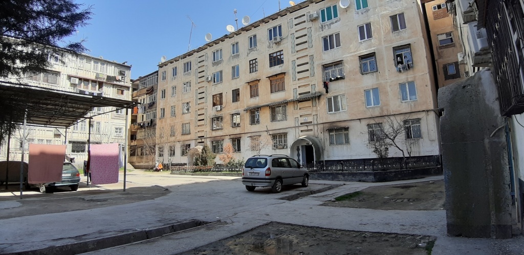 Хуршед живет в микрорайоне Зарафшон со своими родителями. Но когда мы приехали, в доме была только его мать и тетя, последняя и отрыла нам дверь.