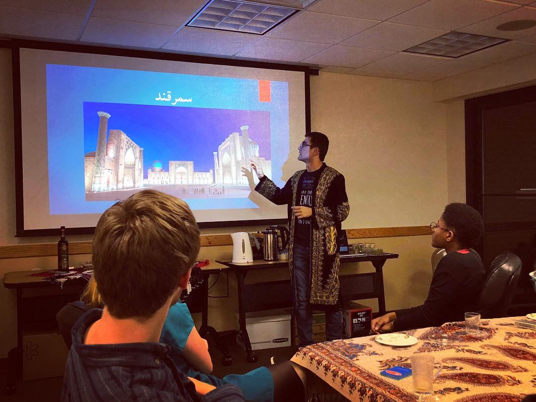 С нового года я стал одним из руководителей клуба Young Professionals in Russian and Eurasian Studies. Недавно подготовил презентацию студентам Джорджтауна о Таджикистане, культуре и истории таджиков. Весной планирую провести празднование Навруза в стенах университета совместно с посольством Таджикистана.