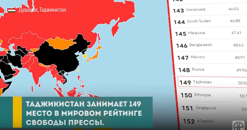 Профессия журналиста, как отмечают в Freedom Hause, в Таджикистане становится все больше опасной. А «Репортеры без границ» вовсе определили Таджикистану 149 место из 180, обозначив ситуацию со свободой слова в нашей стране «сложной».
