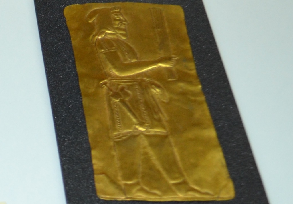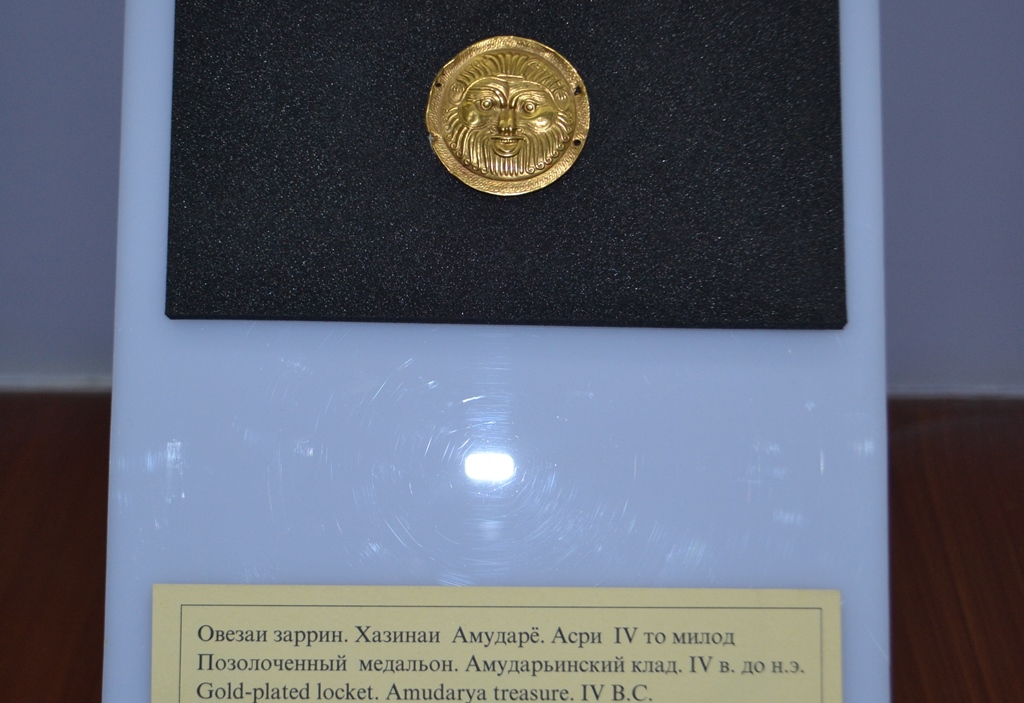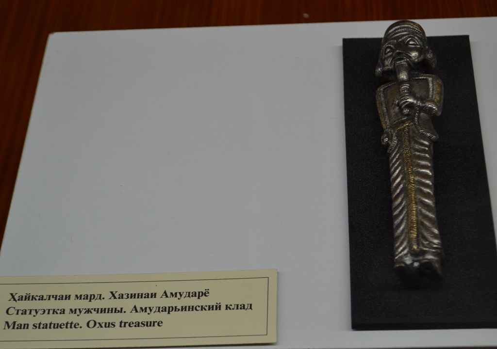 Среди предметов Амударьинского клада, копии которых переданы в Национальный музей Таджикистана, особое место занимает золотая пластина с выполненным на нее изображением мужчины — этнического типа жителя Бактрии – историко-культурной области, располагавшейся по обеим берегам Амударьи от Гиндукуша до Гиссарского хребта. В состав Бактрии входил и юг Таджикистана.