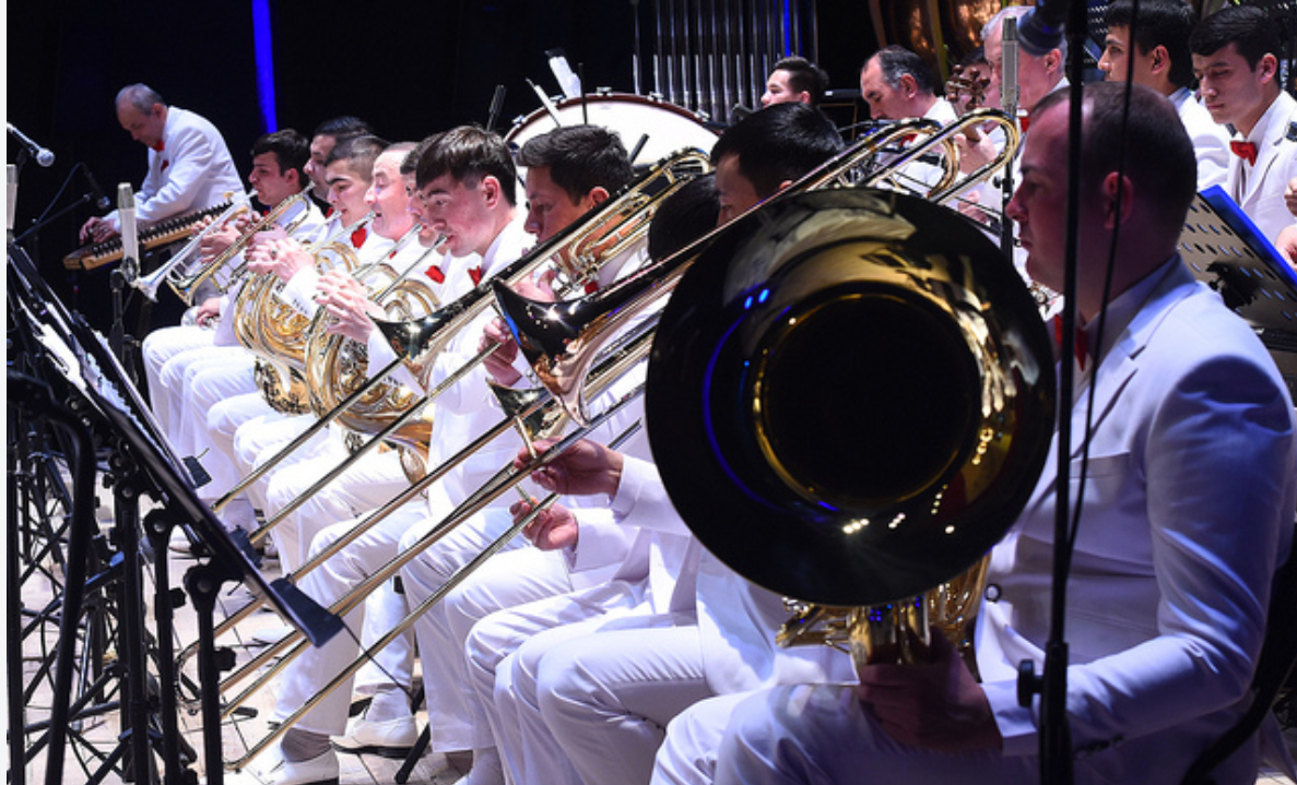 В построении такого зала необходимо было учитывать законы акустики, поэтому проводились специальные измерения, подбирались соответствующие материалы, обеспечивающие качественное звучание оркестра. Когда были приобретены инструменты, оформлены здание и зал, началась творческая работа коллектива. Первое наше выступление было связано с праздничным концертом 23 февраля 2018 г., проведенного в честь 25-летия создания Вооруженных сил республики, а также в программе «Шоми Дусти» 6 марта этого же года с участием двух президентов – Республики Таджикистан и Республики Узбекистан.