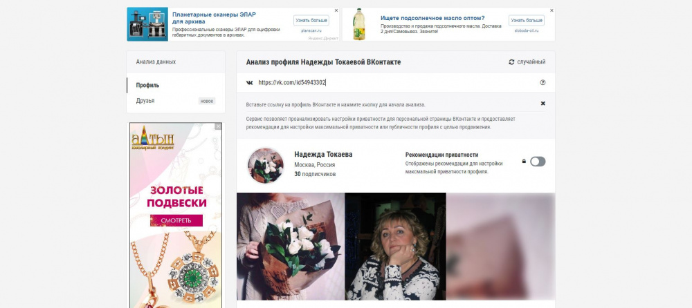 Поиск Google выдает по запрашиваемому имени «Токаева Надежда Давыдовна» фотографию в соцсети «ВКонтакте». Профиль указывает место проживания Москва, Россия. Последнее посещение — 7 марта 2019 в 14:36. На 26 семейных фотографий профиля присутствия сына Тимура Токоева и мужа не выявлено. Однако точно ли это супруга нового президента Казахстана, не известно.