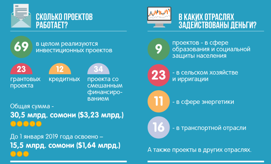 Показываем сколько инвестиций и от кого мы смогли привлечь в ушедшем году, на что они тратятся и сколько ещё инвестиций Таджикистан планирует привлечь.