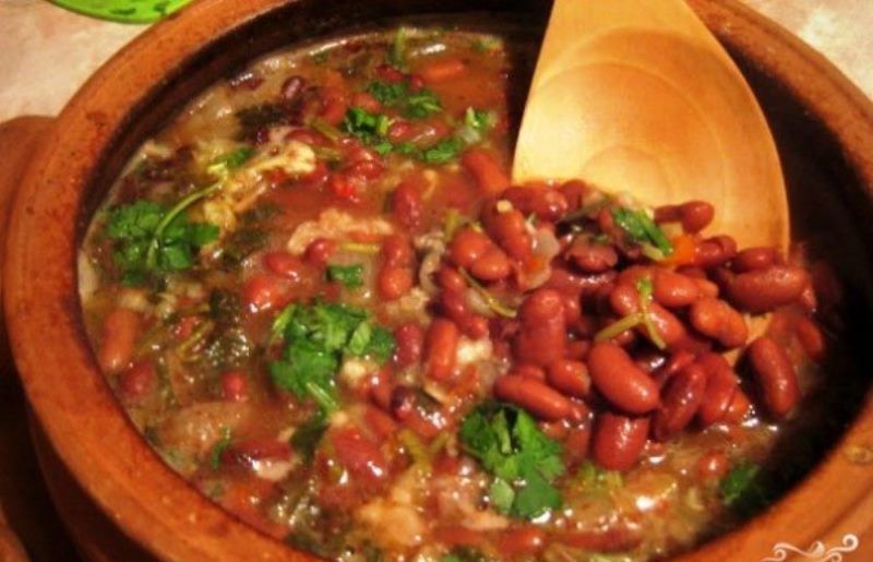 После вареную фасоль добавьте к бульону вместе с перемолотой в ступке или через мясорубку пшеницей и ботвой сахарной свеклы. Отдельно приготовьте поджарку из лука, добавьте ее в бульон вместе с приправой – петрушкой и сельдереем. Все, суп лубиёва готов.