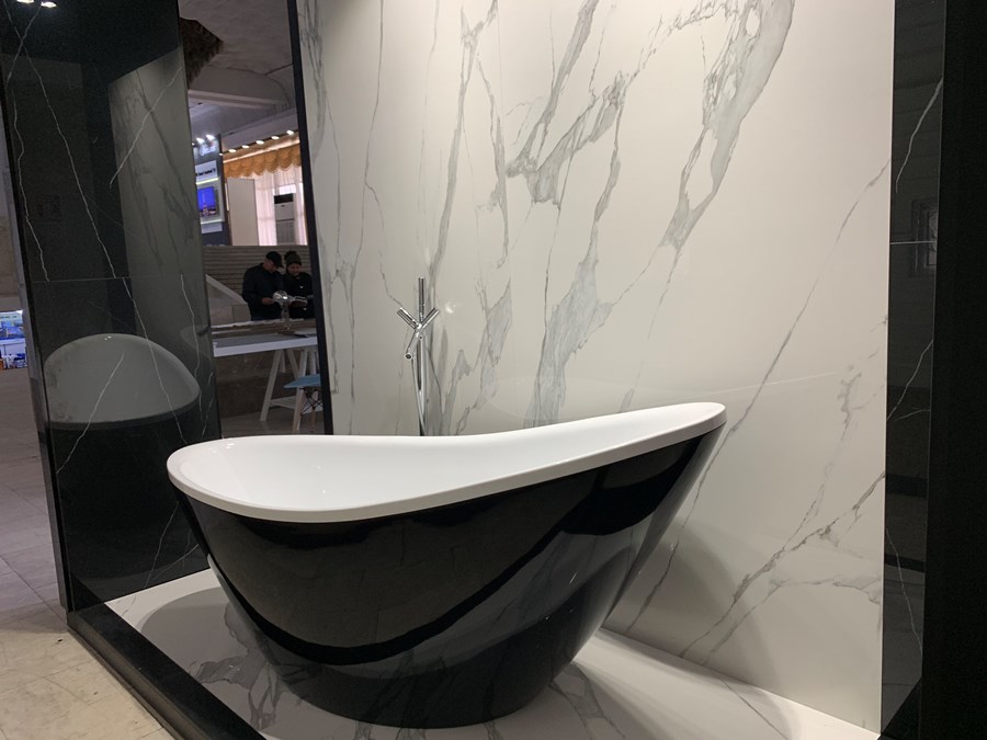 Свою уникальную керамическую плитку Tubadzin изготавливает при помощи самых современных технологий. Компания представила две разновидности плиток от одного из их брендов – «Монолит» напольные и настенные. Обе разновидности практически идентичны по качеству. Преимуществом является и нестандартный размер – 2,40-1,80 м с толщиной всего 6 мм. Таким параметром обладает новинка среди керамических плиток, а это означает, что данную плитку можно использовать для облицовки не только стен, но и мебели, например, стола кухонного гарнитура.
