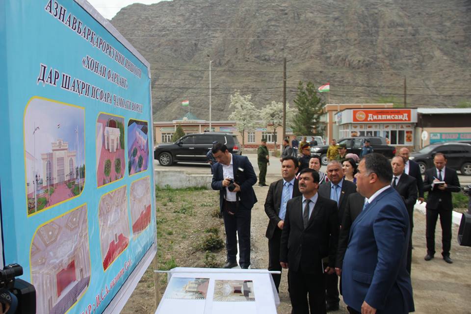 Председатель области также дал старт строительству спортивного зала на 200 мест в селе Калъача джамоата Ворух. По проекту здесь же будет построено новое здание джамоата и площадь национального флага.