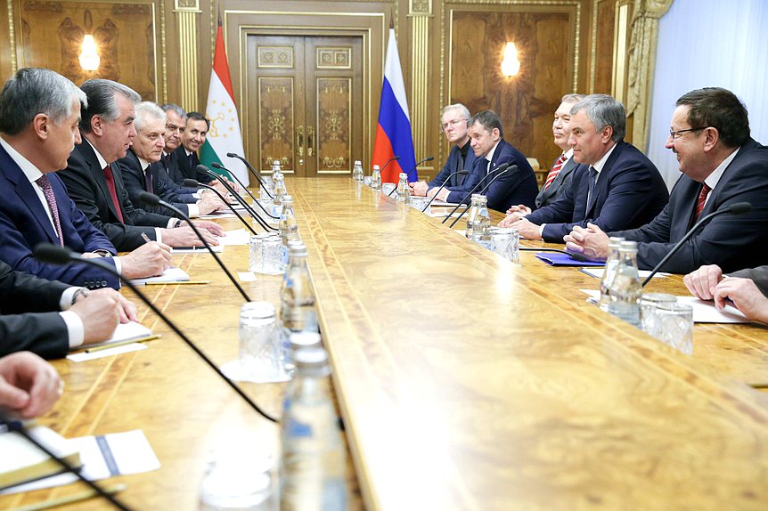 Президент Таджикистана Эмомали Рахмон в рамках официального визита в Россию 16 апреля встретился с председателем Государственной думы России Вячеславом Володиным, с руководителями и представителями таджикских трудовых мигрантов и главой правительства России Дмитрием Медведевым.