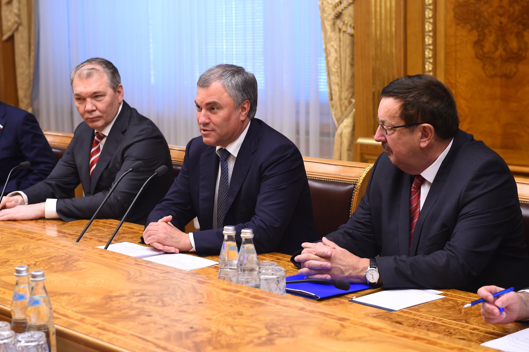 На встрече с председателем Государственной думы России Вячеславом Володиным были обсуждены нынешнее состояние и перспективы межпарламентских отношений двух государств.