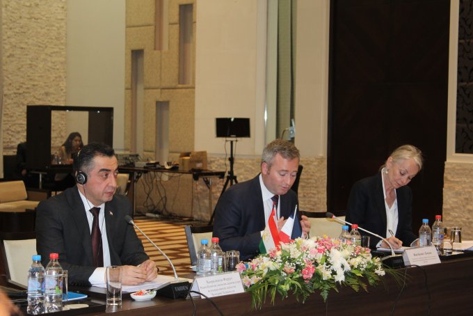 Во встрече приняли участие глава Госкомитета по инвестициям и управлению государственным имуществом Таджикистана Фаррух Хамрализода и государственный секретарь по иностранным делам Франции по внешней торговле, туризму и франкофонии Жан-Батист Лемуан.