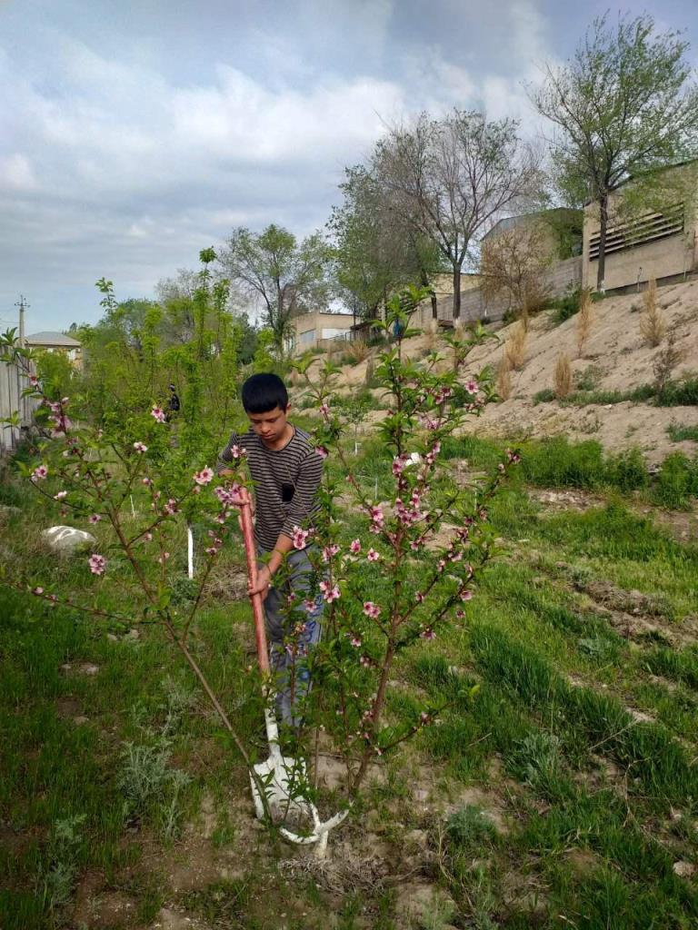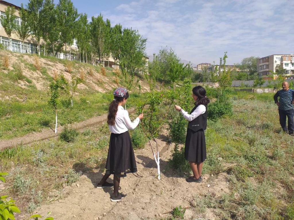 Работали в свободное от учебы время, высадили несколько сот фруктовых деревьев, среди которых яблони, абрикосы, вишня, айва, гранаты, сливы.