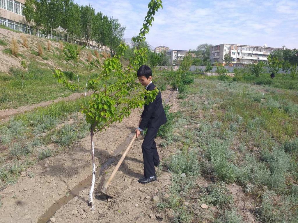 «Идея благоустроить бесхозный пустырь пришла мне в голову четыре года назад – рассказывает Файзулло Файзиев. — Провели собрание коллектива школы, пригласили родительский комитет посоветовались, и пришли к единому мнению засадить пустырь фруктовыми деревьями. Чтобы решить проблему полива сада обратились к руководству водоканала с просьбой разрешить провести воду. Нам пошли навстречу и дали добро».