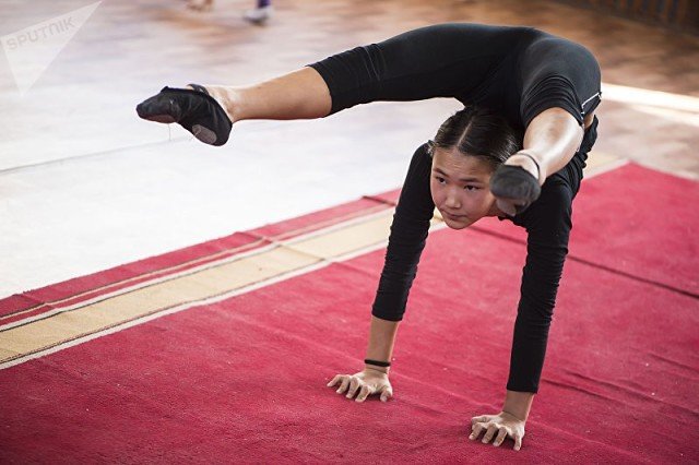15-летняя девочка каучук из кыргызского цирка. Ее карьера началась случайно. В 11 лет Милена посмотрела передачу про гимнасток и решила, что тоже хочет быть одной из них. Уже через неделю она встала на мостик, а через месяц села на шпагат.
