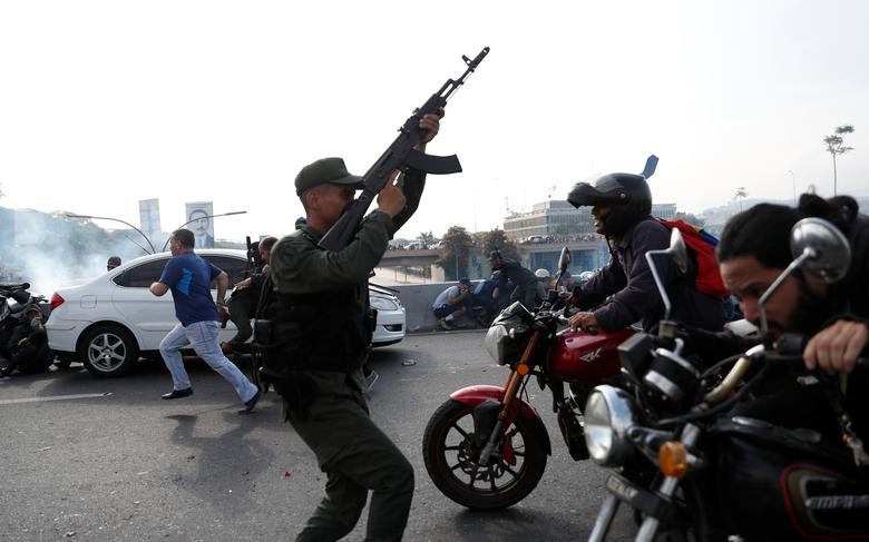 По информации агентства Рейтер, днем в Каракасе произошло столкновение военных, поддерживающих Гуайдо, с силами, верными Мадуро.