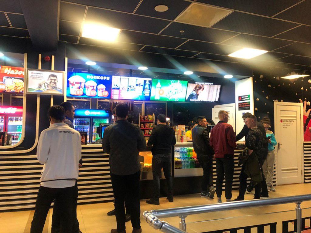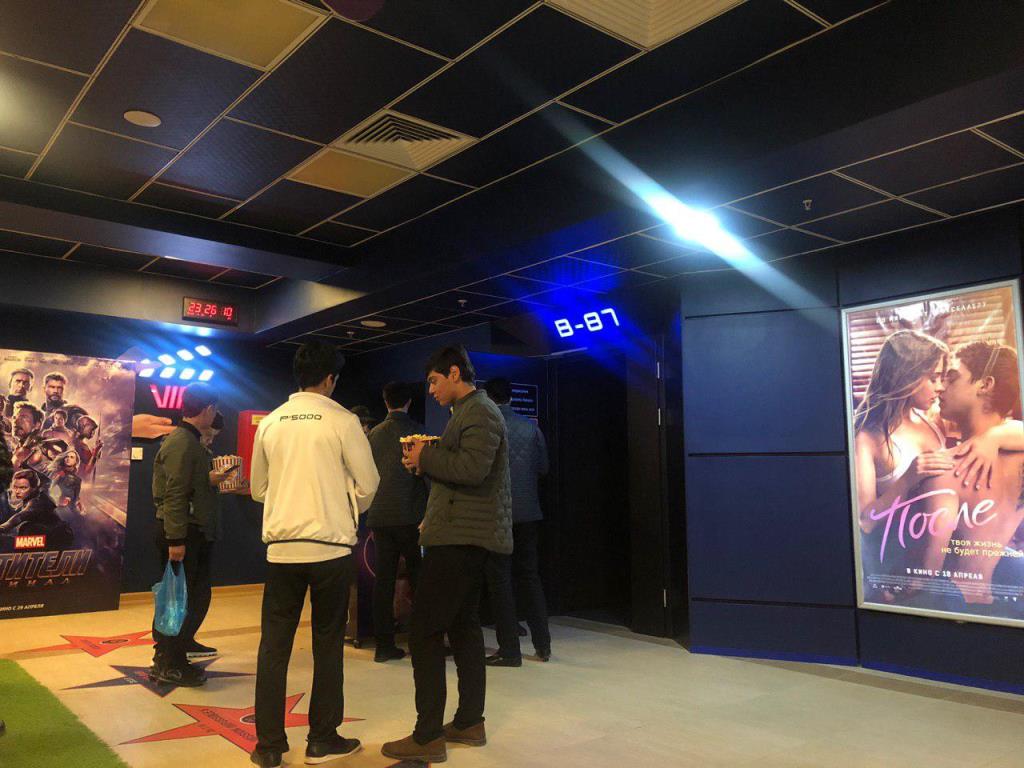Кинотеатр в ночное время ничем не отличается от дневного: все так же много народа. В первые три дня премьеры в кинотеатре запланировано около 50 показов финальной части «Мстителей», и большинство билетов были распроданы по предпродаже. Такой ажиотаж бывает на мировые премьеры регулярно. По словам девушки на кассе, обычно на ночные сеансы приходит около 25% от посетителей кинотеатра в дневное время, но во время премьер залы полные почти круглосуточно.