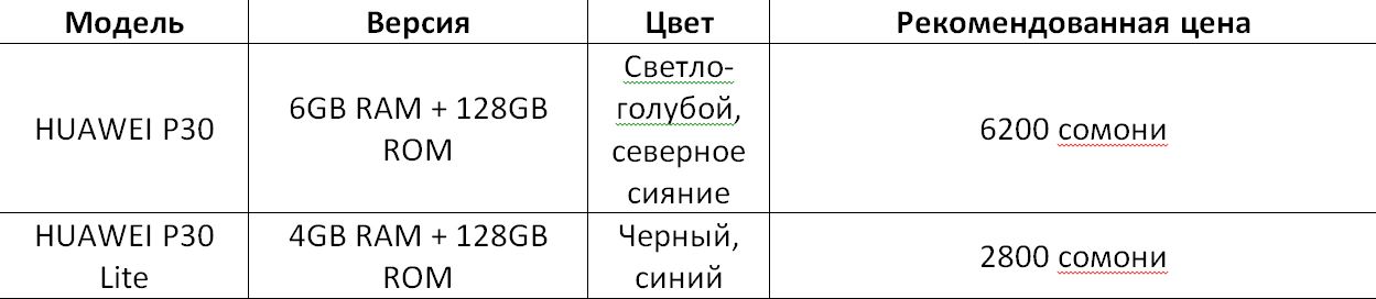 HUAWEI P30 и HUAWEI P30 lite доступны в продаже в Таджикистане c 27 апреля. Информация о старте продаж Huawei P30 Pro будет объявлена в мае: