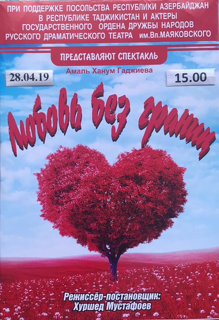 Спектакль поставлен при поддержке посольства Азербайджанской Республики в Республике Таджикистан, за что выражаем свою благодарность посольству и лично послу Господину Гасану Мамедзаде.