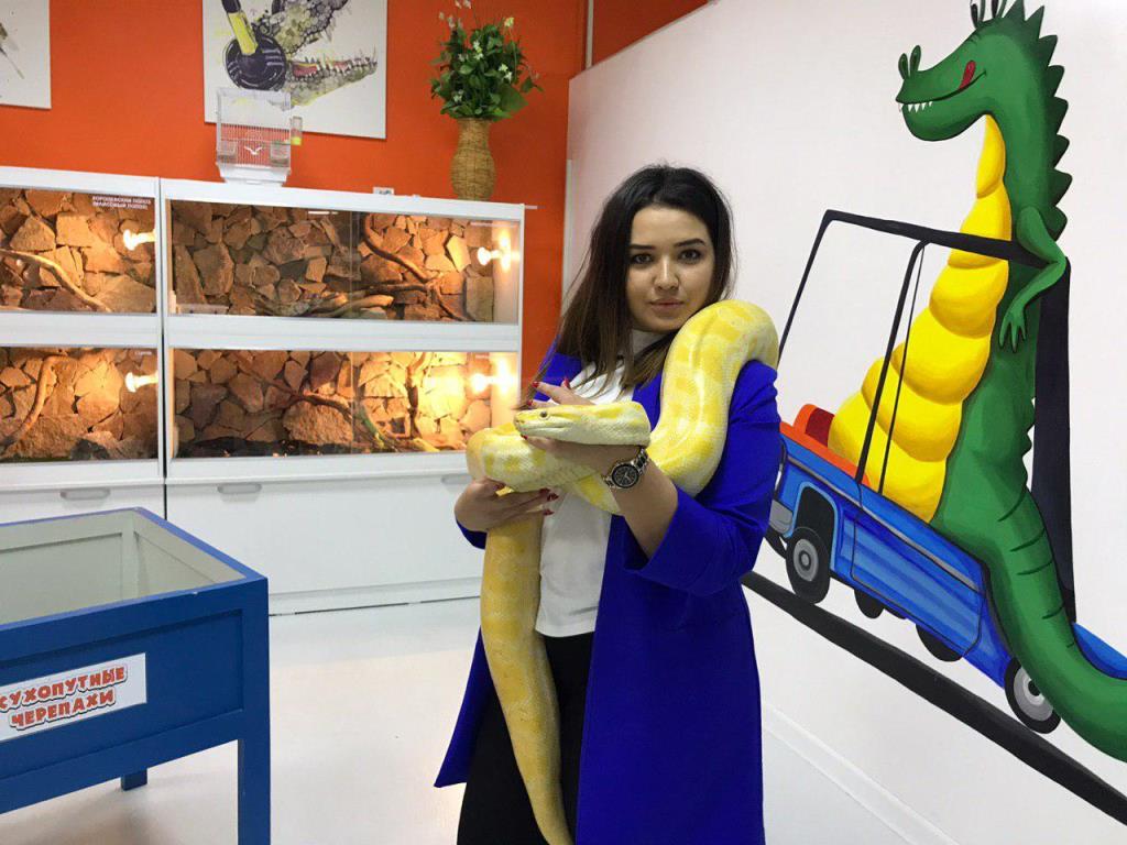 Нас встретила замечательная и позитивная Наргиз Дадабаева, администратор нового столичного зверополиса, который находится на подвальном уровне супермаркета Ашан, а точнее — на парковке.