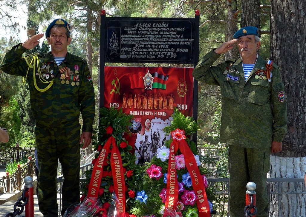 На открытии присутствовали воины-интернационалисты организации «Боевое братство», представители республиканского и городского Совета ветеранов, сотрудники посольства России в Таджикистане, военнослужащие и гражданский персонал 201 военной базы, военнослужащие Группы Пограничных войск РФ в РТ, байкеры мото-клуба "Ирбис", представители Россотрудничества в Таджикистане, городские активисты, студенты и др.
