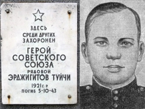 Туйчи Эрджигитов похоронен в братской могиле в городе Любань Ленинградской области. Одна из улиц в этом городе названа именем Героя.