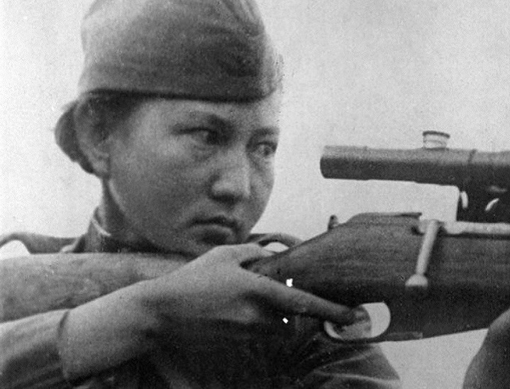 Алия Молдагулова родилась в 1925 году в ауле Булак (Актюбинская область Казахстана). До начала Великой Отечественной войны девушка жила и училась в Ленинграде. Во время ВОВ служила снайпером в 54-й отдельной стрелковой бригаде 22-й армии 2-го Прибалтийского фронта, обезвредив более 70 солдат и офицеров противника. Погибла в начале января 1944 года во время проведения Ленинградско-Новгородской операции. В июне того же года Алие Молдагуловой было посмертно присвоено звание Героя Советского Союза.