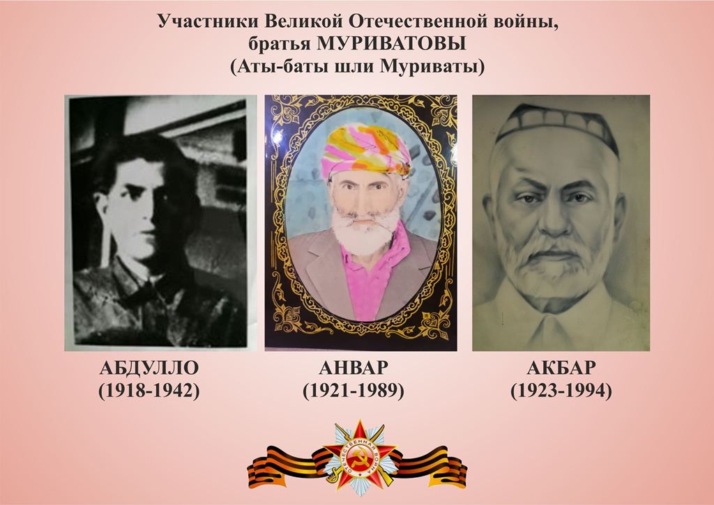 Минуло много лет, и теперь прах Анвара и Акбара – ветеранов ВОВ — покоится на малой родине, в Дарвазе. Их дети разбрелись по миру. Не исключение и автор этих строк. В течение шести лет служил и работал в Афганистане, где получил ранения. Затем младший брат, Хамид Муриватов, тоже проходил службу в Афганистане, сейчас он живет в родовом доме Муриватовых.