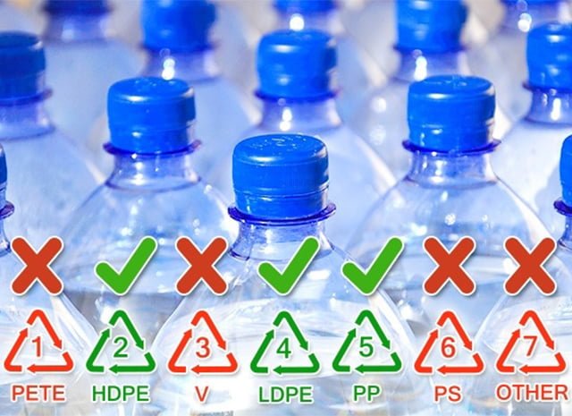 Пластиковые бутылки бывают разные, определить их вид просто. Обычно, на дно пластиковой тары наносят треугольник из трех стрелок, внутри которого расположена цифра, а под ним — буквы.