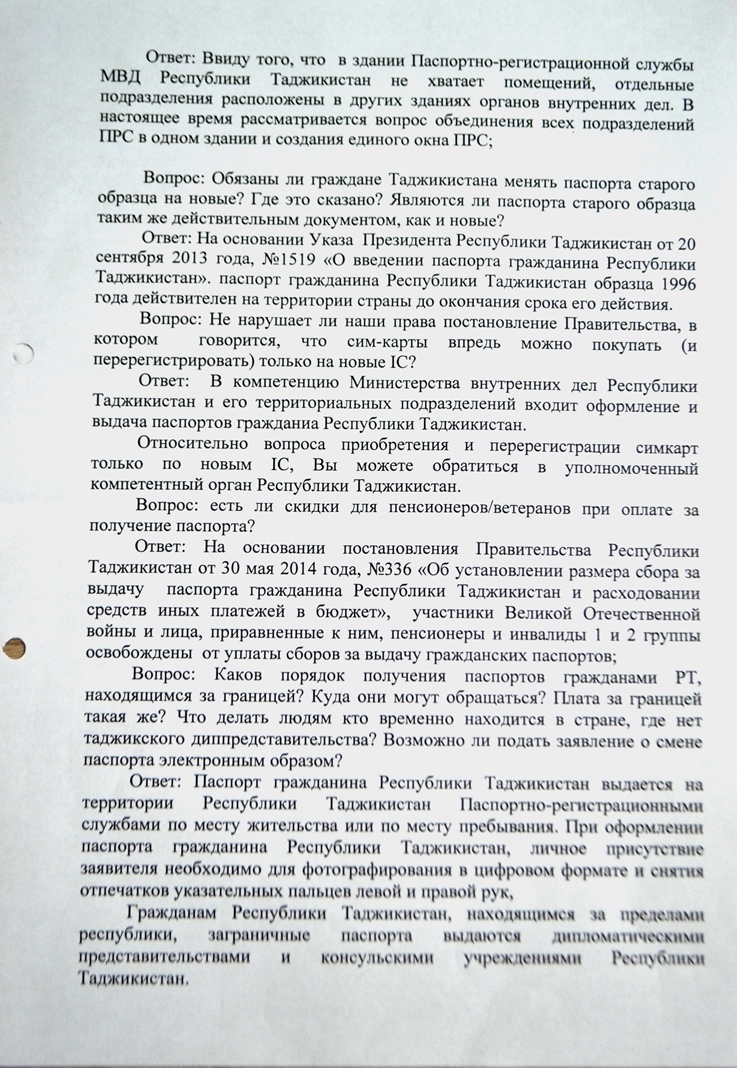 — На основании Указа президента Республики Таджикистан от 20 сентября 2013 года, 1'(1519 «О введении паспорта гражданина» паспорт гражданина РТ образца 1996 года действителен на территории страны до окончания срока его действия.
