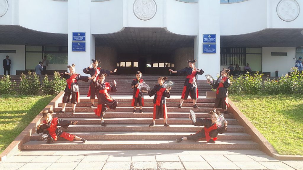 Таджикские дети станцевали стилизованную хип-хоп хореографию в японском духе «Самурай», который был усложнен добавлением реквизита – веера, а также исполнили современную хореографию на тему «Полиция».