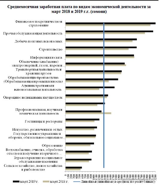 Среднемесячная номинальная зарплата в марте этого года сложилась в размере 1364 сомони ($145), что на 11,1% больше по сравнению с мартом 2018 года, сообщает Агентство по статистике при президенте РТ.