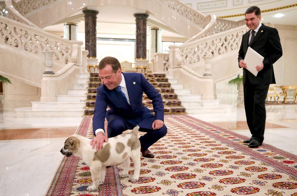 Отмечается, что Медведеву также передали родословную щенка. Когда животное улеглось в ногах у премьер-министра России, глава Туркмении заявил, что щенок «уже нашел хозяина». «Нашел, нашел!» — согласился Медведев.