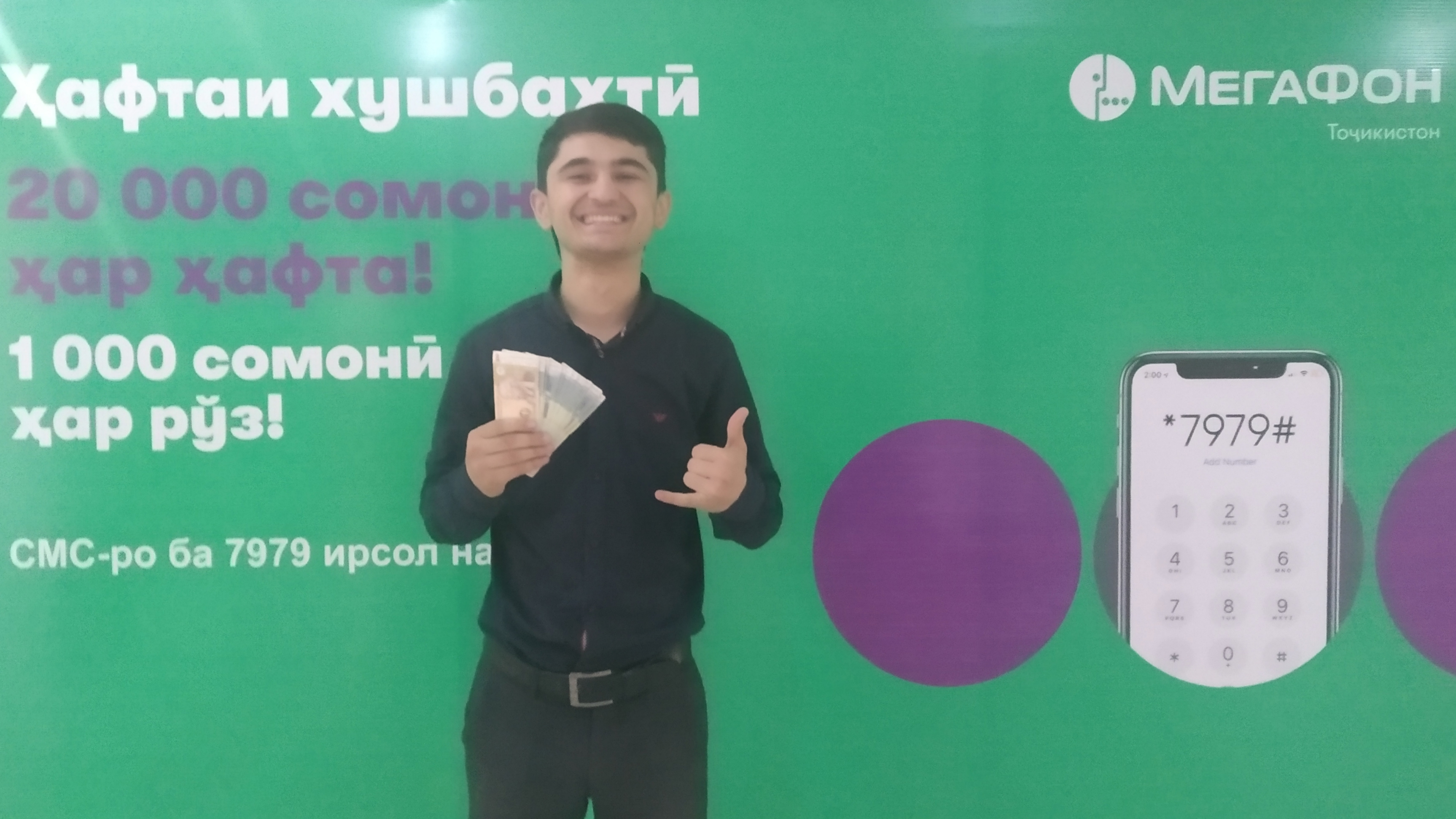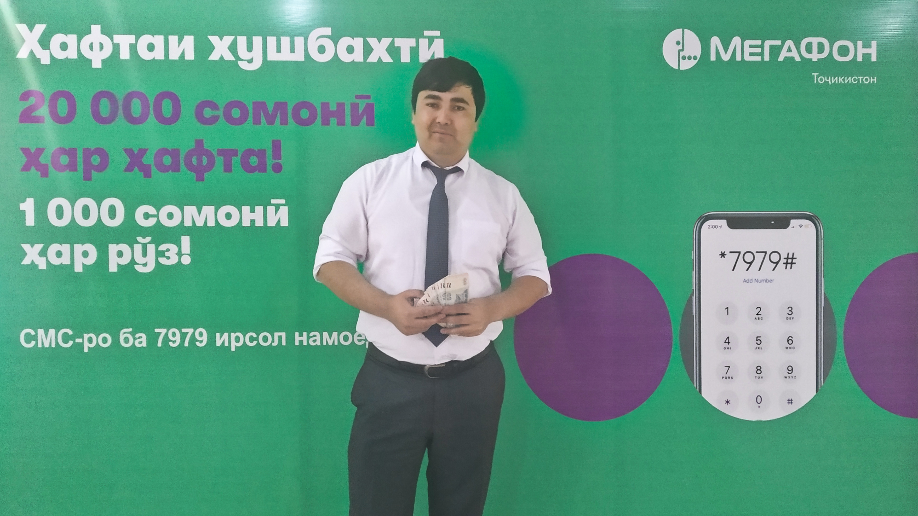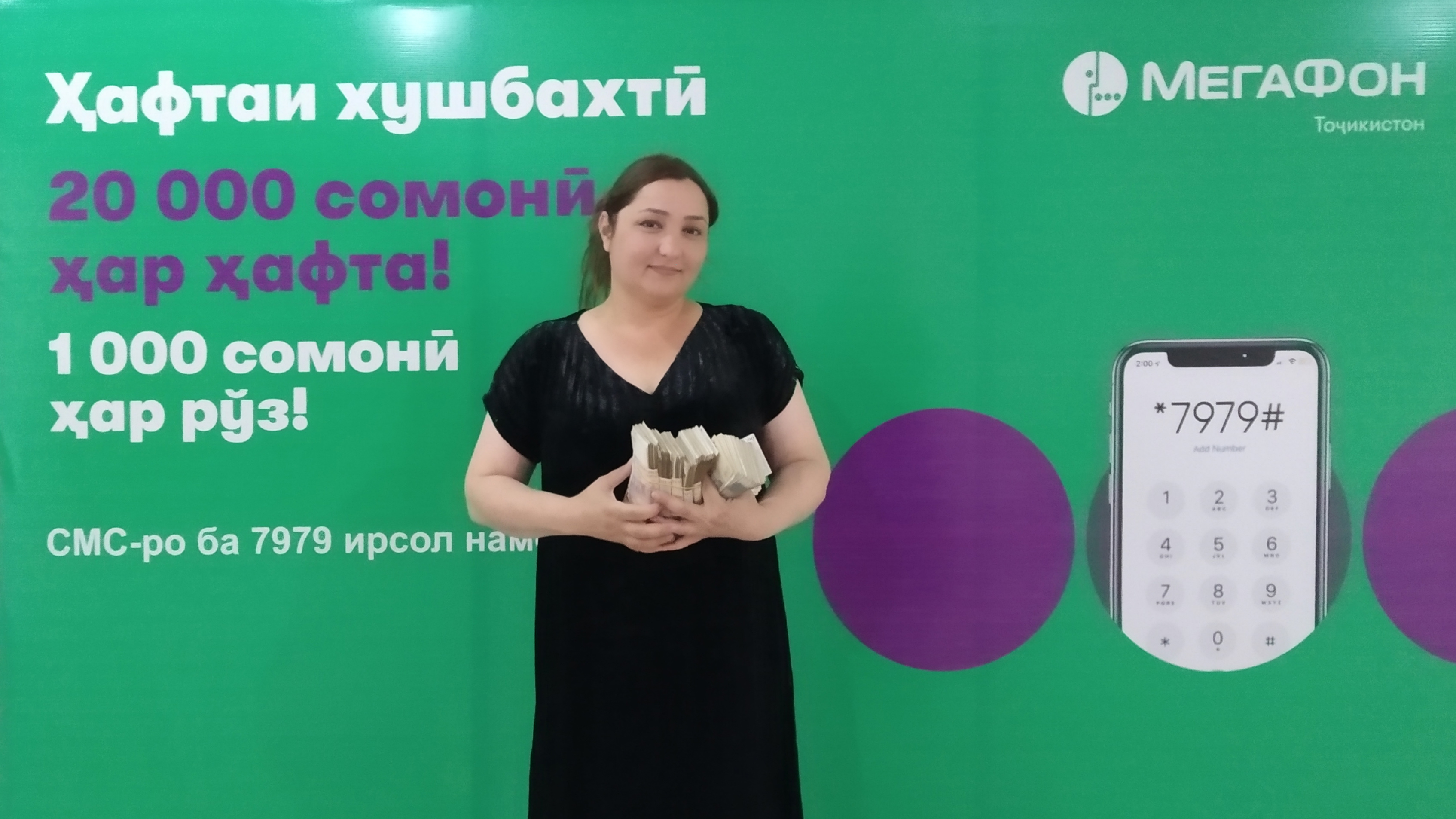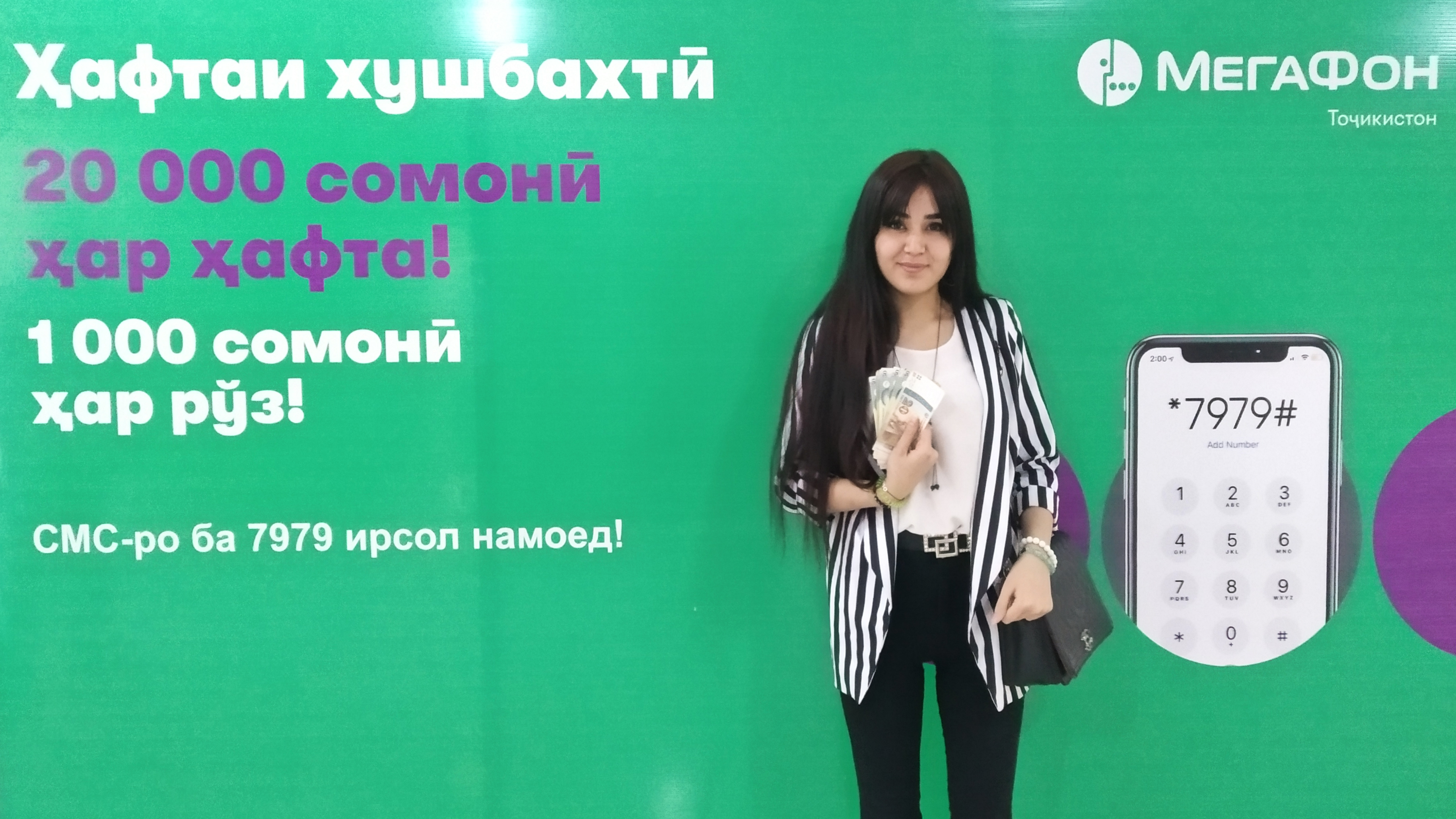 22 апреля МегаФон Таджикистан запустил викторину «Счастливая неделя». Отвечая на вопросы, каждый день можно выиграть 1 000 сомони, а по воскресеньям – 20 000 сом. До завершения акции призы получат 365 победителей. Эта возможность предоставляется только абонентам МегаФон Таджикистан контент-провайдером ООО «Табассум Контент».