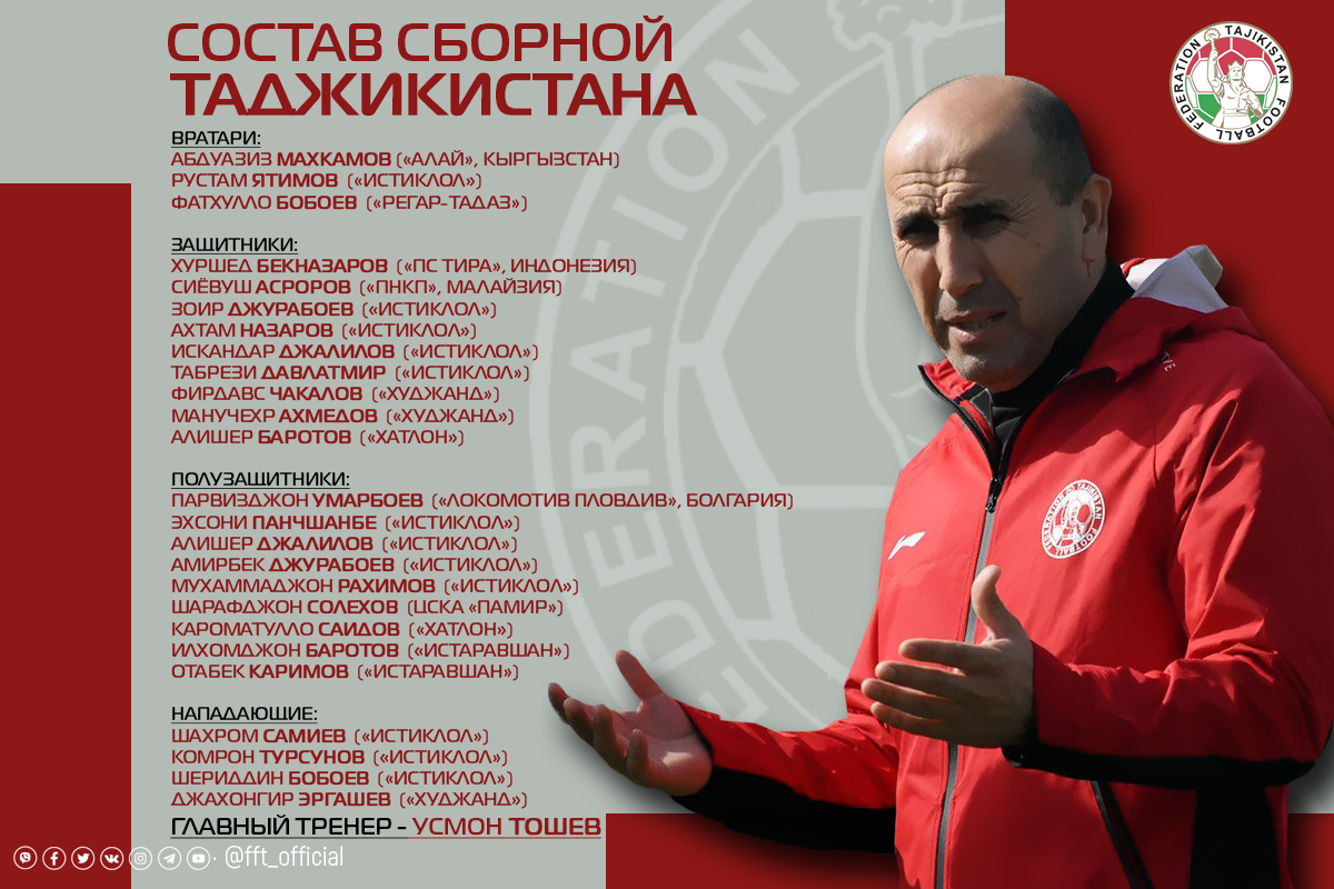 На днях исполняющий обязанности главного тренера сборной Таджикистана, наставник олимпийской команды республики узбекский специалист Усмон Тошев объявил состав таджикской дружины на эти матчи.