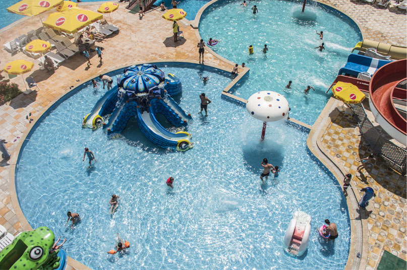 Аквапарк ждёт всех с 10:00 до 20:00 каждый день. Здесь есть две зоны: общая и VIP. В стоимость отдыха в VIP-зоне входит посещение общей зоны, а также СПА (хамам, сауна и водные процедуры).