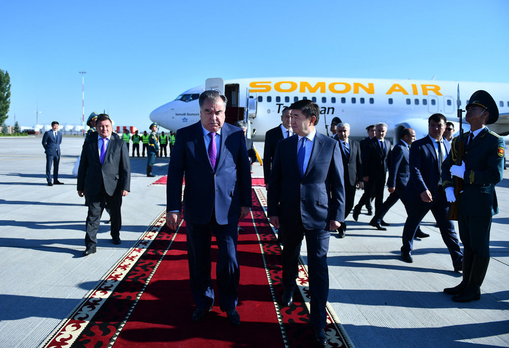 Президент Таджикистана Эмомали Рахмон прибыл в Бишкек для участия на встрече глав государств-членов Шанхайской организации сотрудничества сегодня утром, одним из последних.