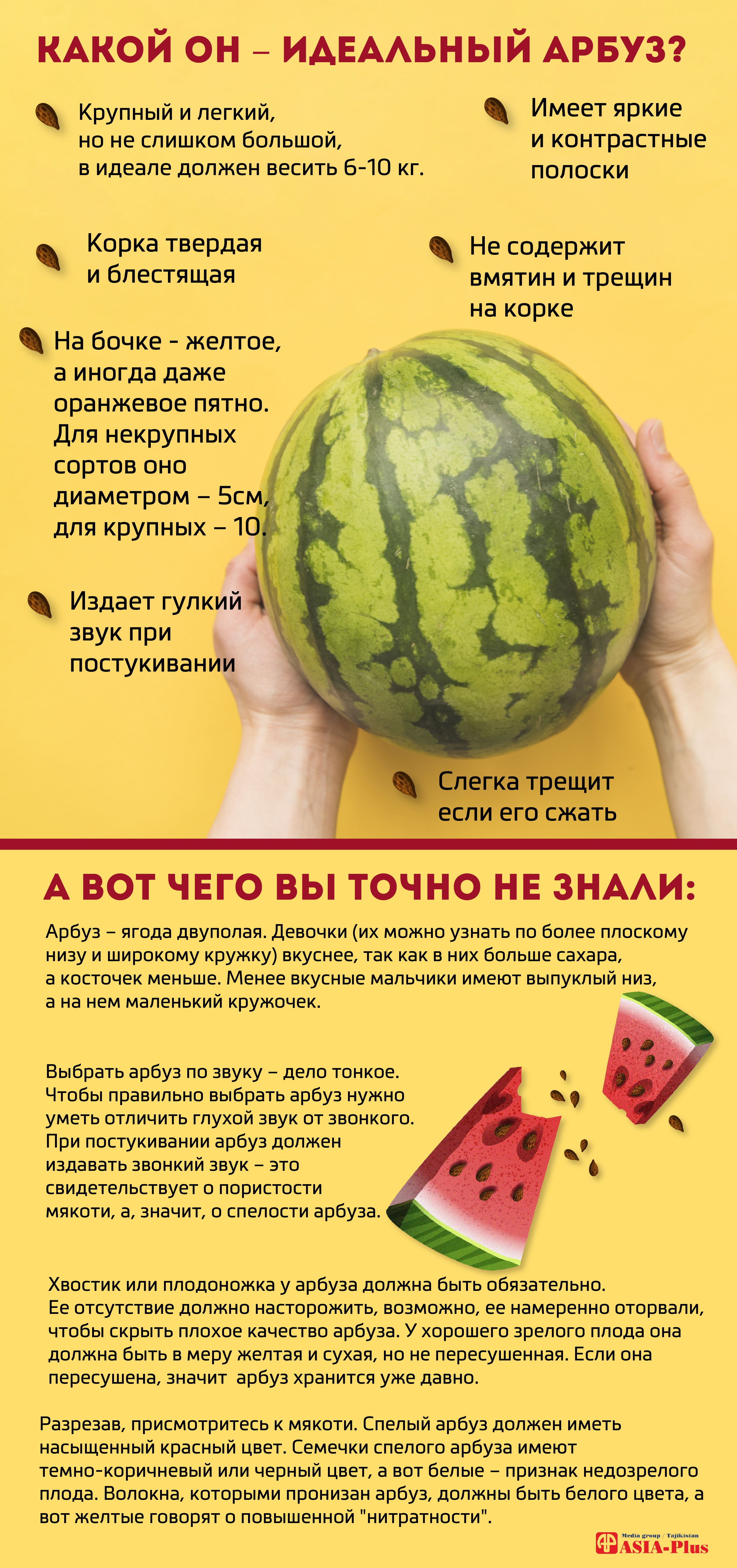 Для арбузов, честно говоря, еще рановато, но они уже есть на базарах, а потому мы вам расскажем, как правильно нужно их выбирать.