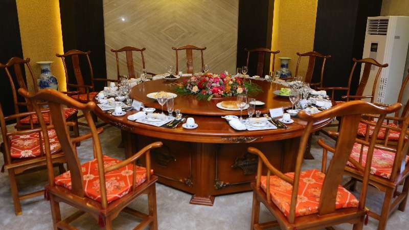 После завершения церемонии открытия, председатель Компании Хуан Цзян Жунг пригласил гостей мероприятия в ресторан китайской кухни и гостиницу. На первом этаже ресторана слева расположен уголок таджикской культуры и истории, а справа – уголок китайско-тибетской культуры и истории. На первом этаже робот-гид на 4 языках встречает гостей, и на таджикском языке рассказывает о всех особенностях культуры и традициях двух народов.