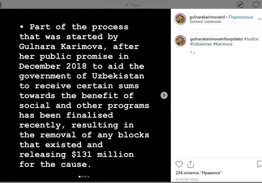 Заявление, в частности, было размещено в аккаунте gulnarakarimovainfoupdates в Instagram (по данным на 16 июня, он был недоступен). В его описании утверждается, что он содержит «подтвержденную информацию» о дочери первого президента, передает ИА "Фергана".