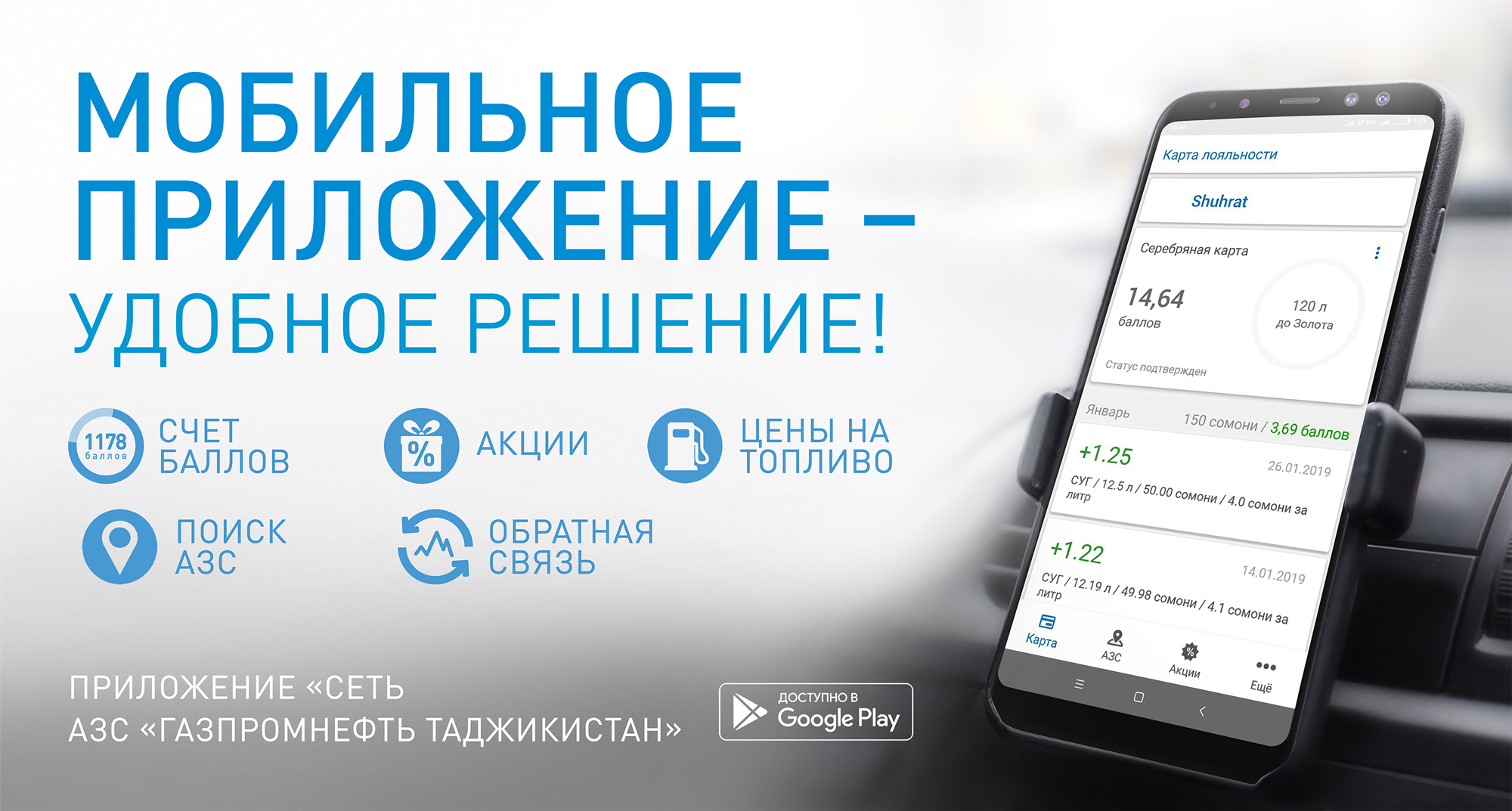 Мобильное приложение доступно для владельцев смартфонов Android. Для того, чтобы установить приложение, перейдите по ссылке https://play.google.com/store/apps/details?id=com.gpn.azs.tj либо в строке поиска в Play Market и введите «АЗС Газпромнефть Таджикистан».