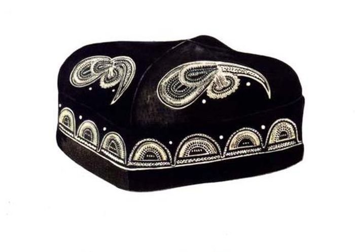 Край тюбетейки обшивается также узкой полоской черного бархата или сатина. В этом случае орнамент околыша тюбетейки является продолжением орнамента донца.