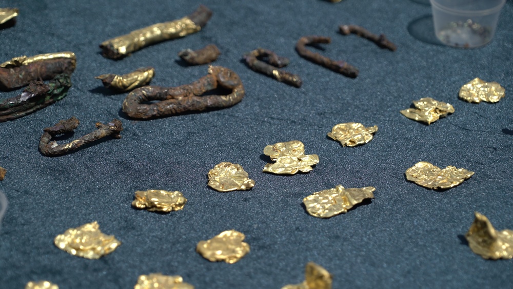 По мнению ученых, оно уникально и не имеет аналогов. Среди находок есть золотая фольга, которой саки обматывали оружие и предметы быта.
