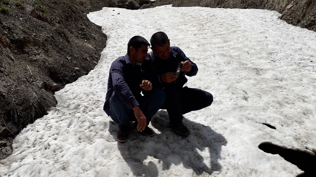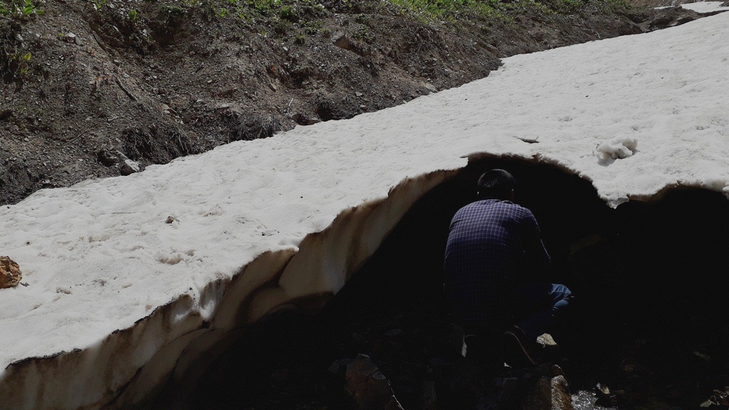 Один из естественных врагов отары – это мелкие ледники. Чабаны проверяют их плотность, можно ли провести отару через них или нет.