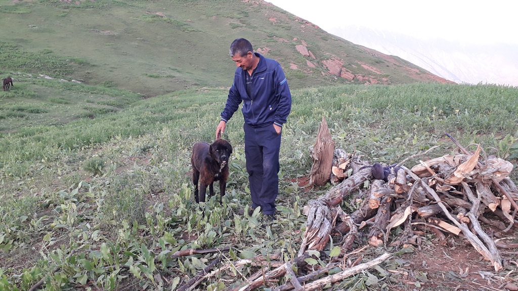 Главный помощник чабана – собака. Это обычный чабанский пёс, хотя и не является породистой, но верно охраняет отару. Волков он не боится, дважды вошел в схватку с ирбисом, но проиграл и с ранениями пролежал несколько дней.