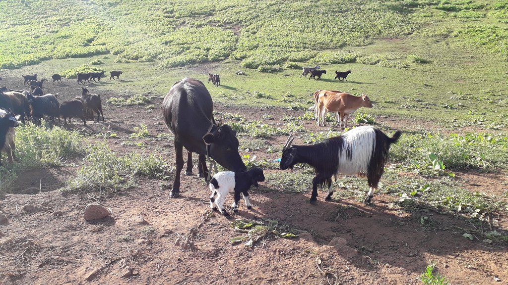 Стадо состоит не только из овец и коз, есть и коровы, лошади, которые пасутся вокруг.