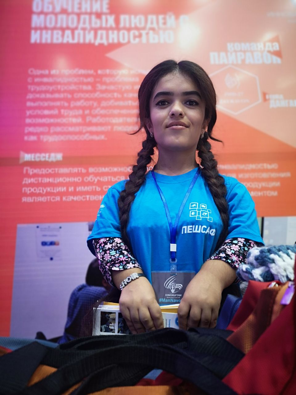 Манижа Саидмуродова, 22-летняя девушка из Дангаринского района, представляет команду из 5 молодых людей с ограниченными возможностями. ”Я чувствовала отчаяние и была близка к потере надежды, но с тех пор, как я стала участвовать в этом проекте, я стала независимой и финансово защищенной. Мне не нужно больше просить у моей семьи деньги, чтобы покрыть мое образование и расходы на проживание, и это делает меня чрезвычайно счастливой».